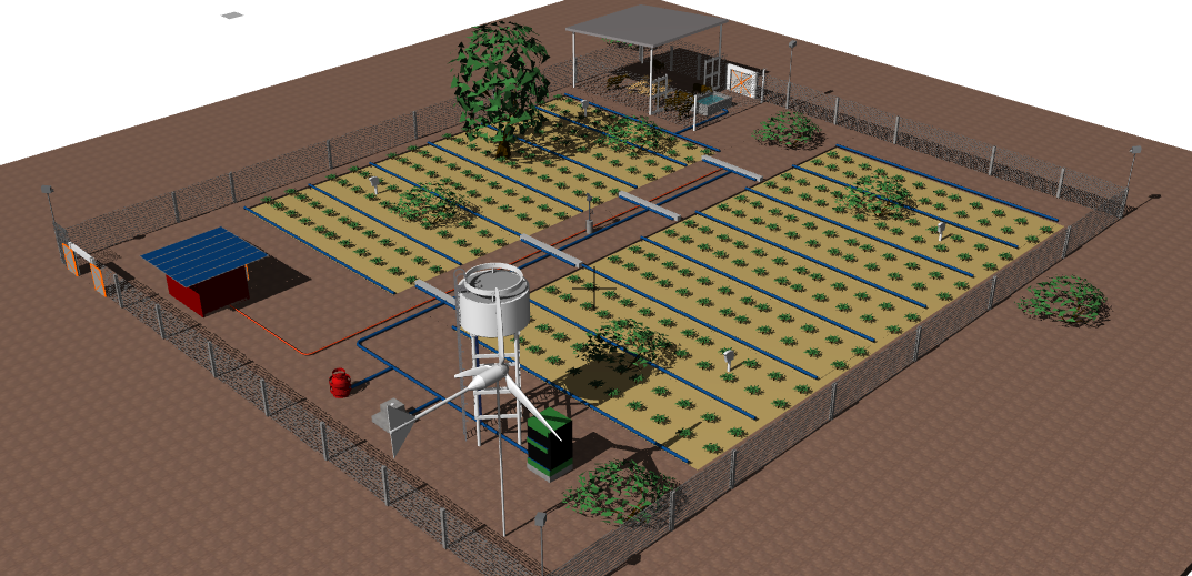 Preparation de terrain, installation d'énergie solaire et château d'eau |