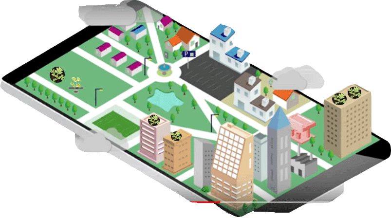 Espace publique vert aménagé et arrosé par le système Télé-Irrigation et équipé par de capteurs de mesure de la pollution de l’air, la température avec système d’alerte individuel et collectif.